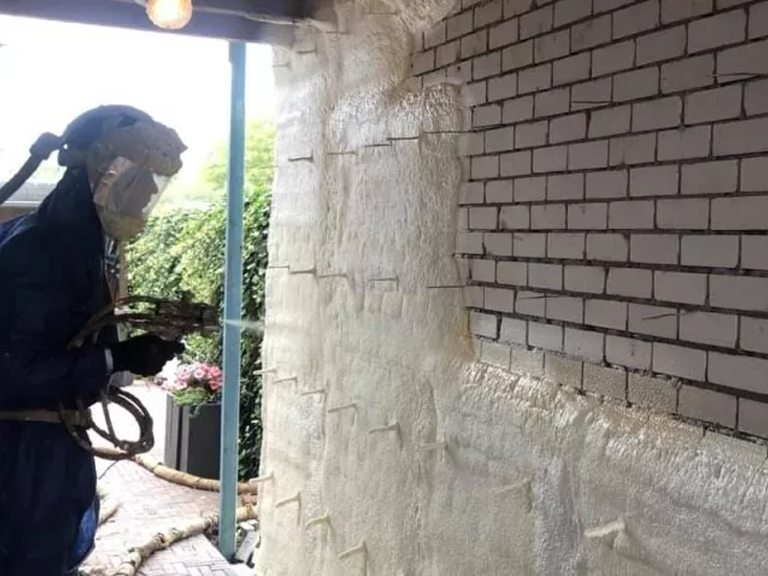 De gevel is voorzien van 80 mm BASF Elastospray, wat zorgt voor uitstekende isolatie en een duurzame beschermlaag.