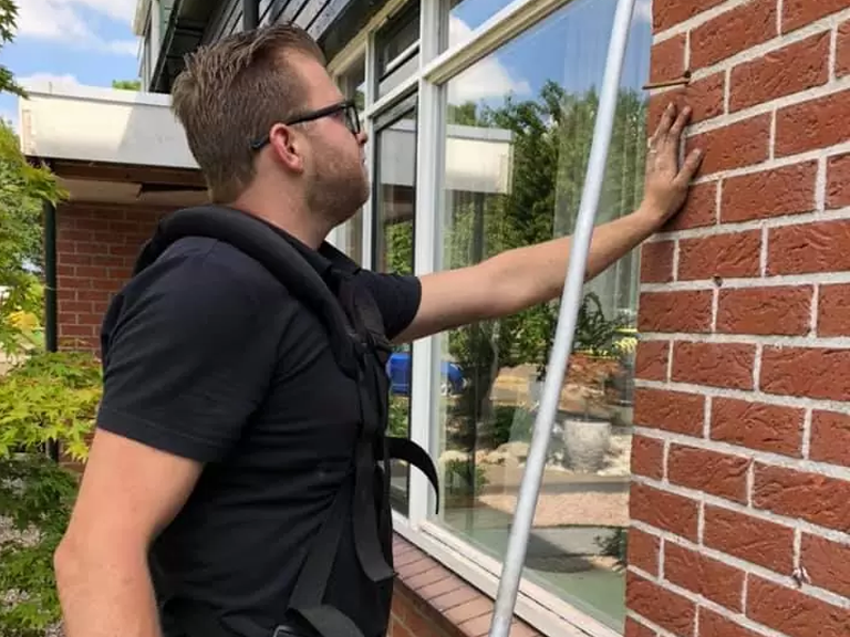 We hebben de voegen uitgebikt, gevel gereinigd, spouwmuurisolatie uitgevoerd, opnieuw gevoegd en geïmpregneerd. Het resultaat: een frisse uitstraling en langdurige bescherming.